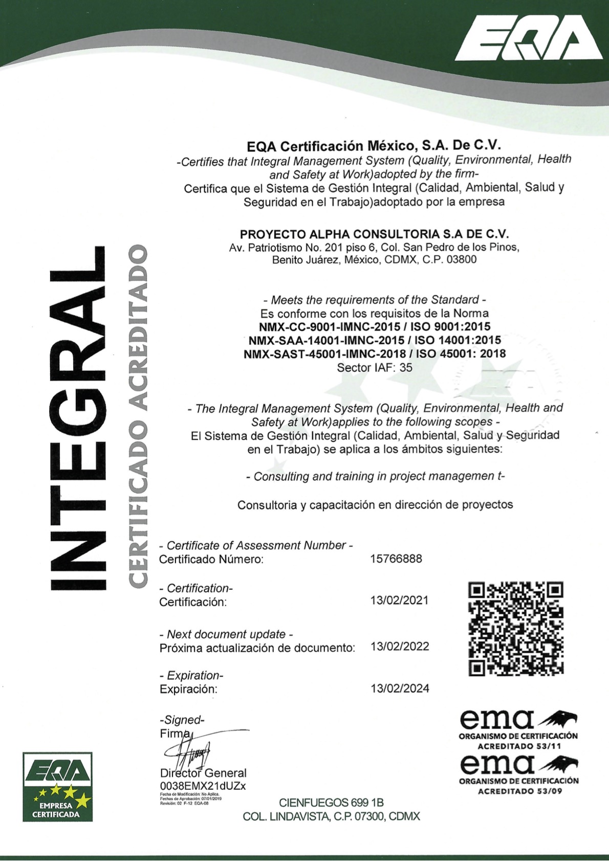 En Alpha Consultoría nos acabamos de recertificar en las Normas Internacionales: